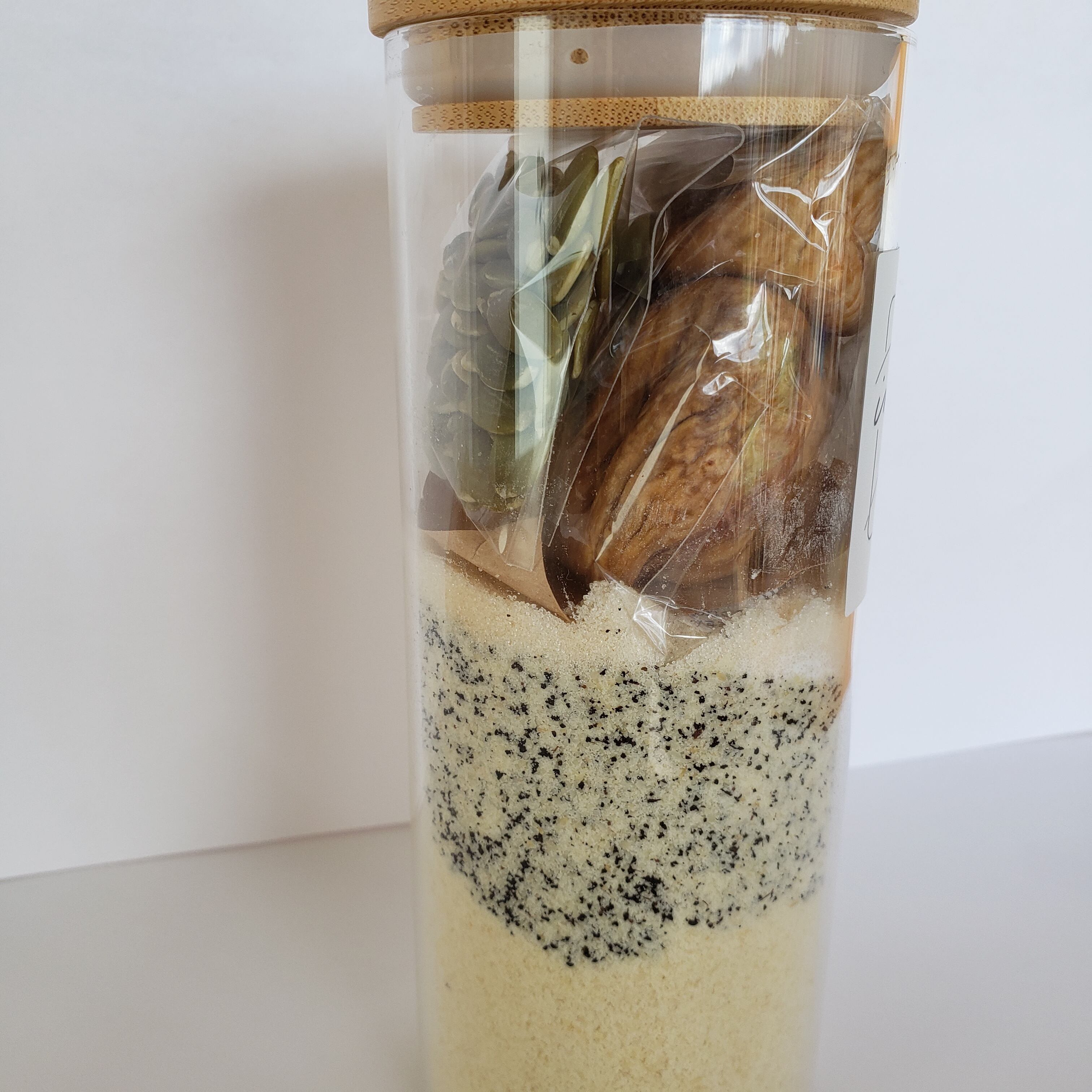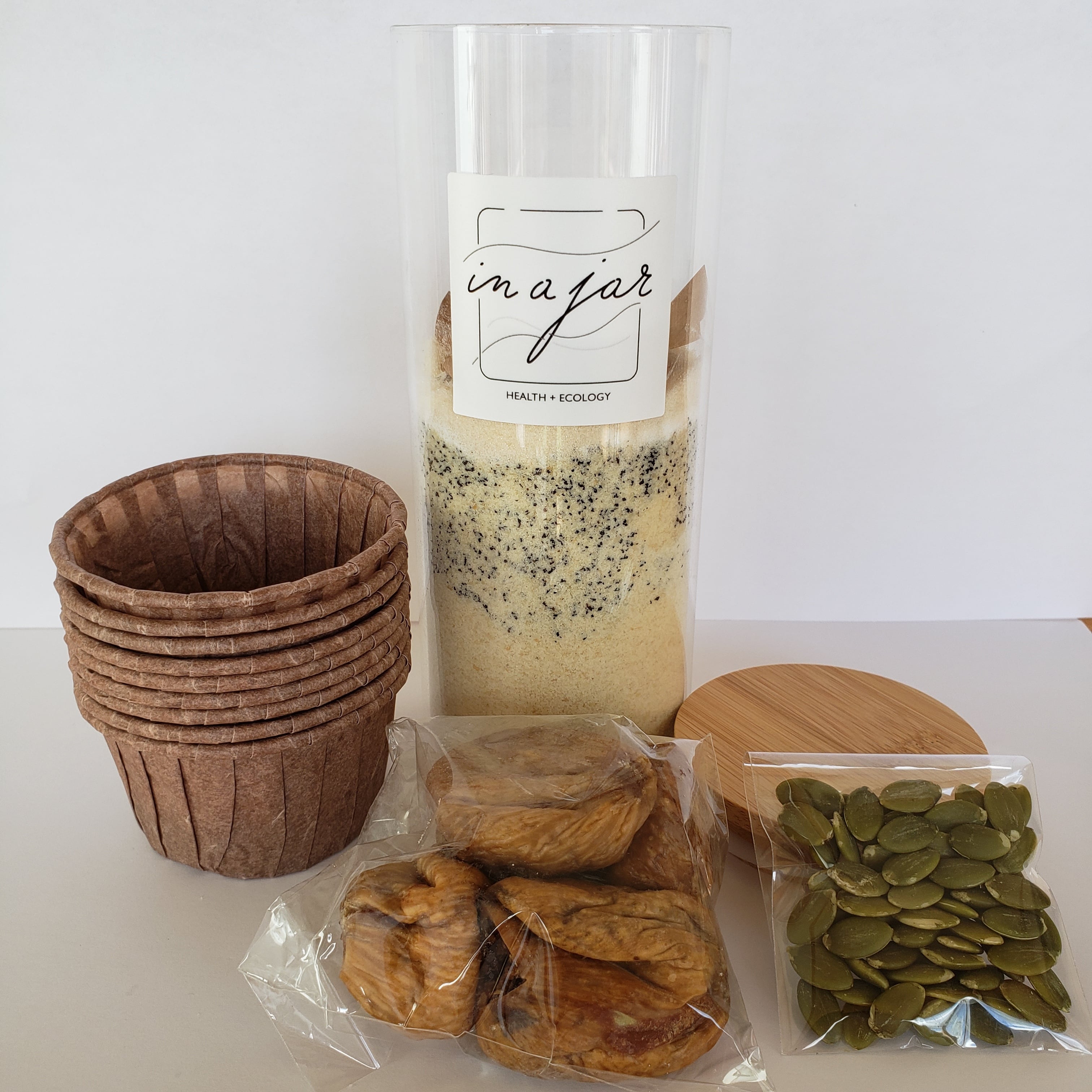 【原材料名】アーモンドフラワー(アメリカ産、国内加工)・ドライいちじく・ラカント(エリスリトール、羅漢果エキス末、甘草エキス末)・アールグレイ茶葉(デカフェ)・パンプキンシード・海塩/ベーキングパウダー(アルミフリー)